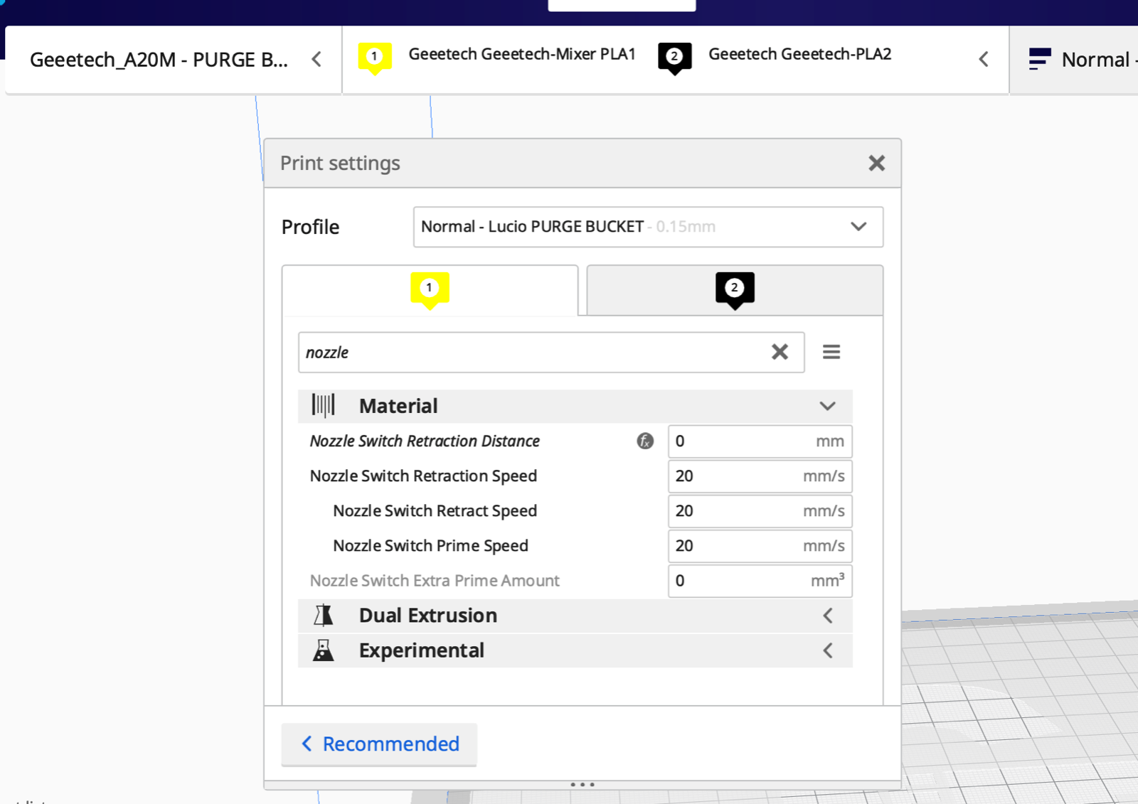 Bucket is easy. See my topic for A10M profile, there is complete solution for dual color printing.