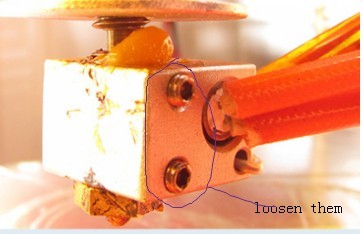 2.Release the screws in your hotend 3.Unscrew your hotend and clean up your abs(keep heating)