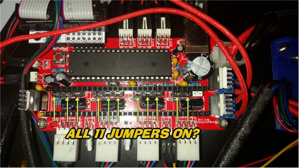 Thank you, but please let me know if my jumpers configuration is correct. Right now I had to guess, so I have populated all jumpers, but the printer behaves erratically. Please see the attached picture and let me know exactly where to put the jumpers and were not.