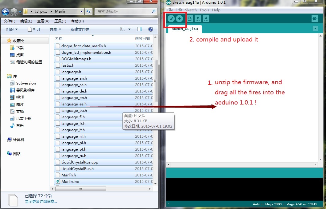 Thanks for the files. However the Marlin firmware is 1.0.0. Is there a way to get me firmware with Marlin 1.0.2 ? Of not ,can you show how to install a Marlin update ? I am not sure how to do it.