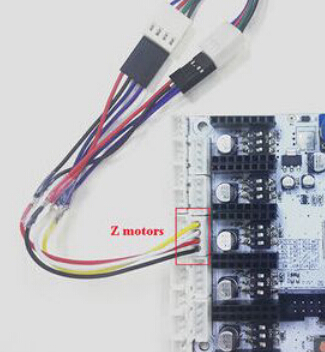 Actually you can make a "1-in-2-out" cable by yourself, but note that the power for the Z motor driver should be a little high for it needs to drive two motors.
