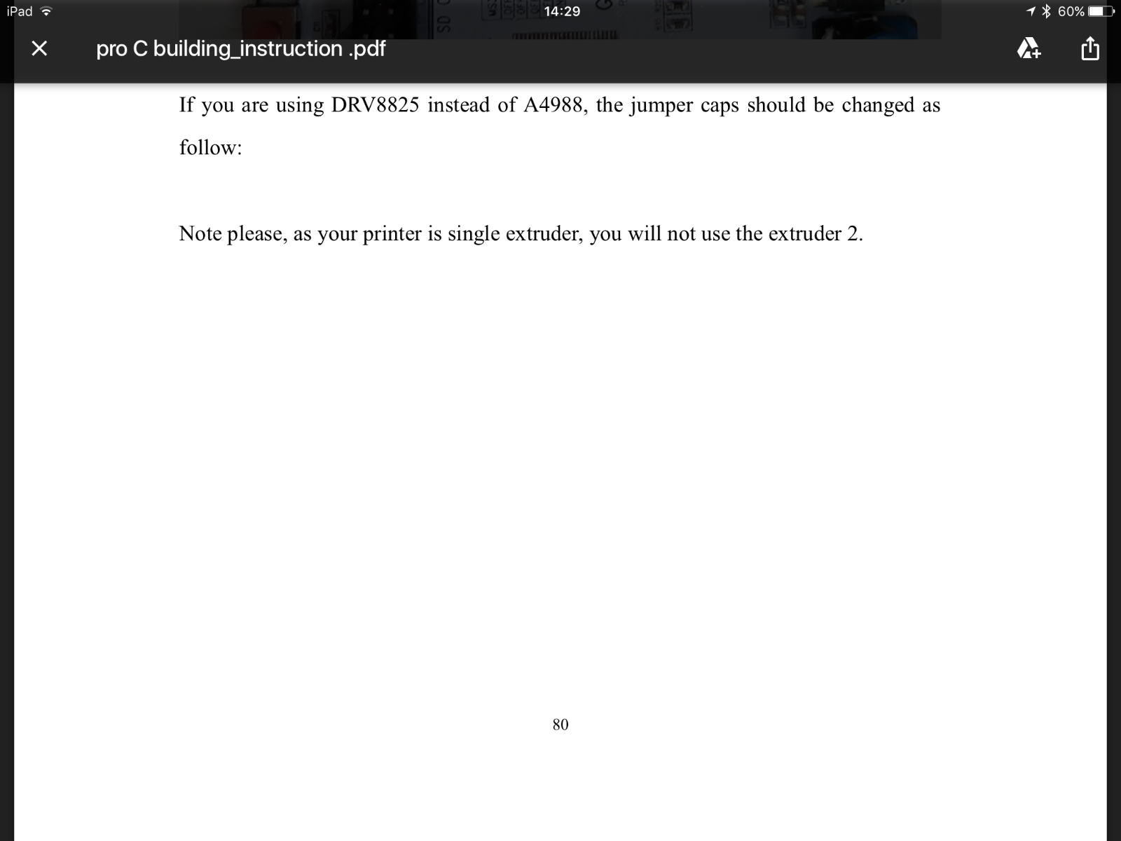 I just bought a Geeetech i3 Pro C that I'm assembling. I also bought 5 drv8825 that I would like to install. On the file I was sent by Geeetech for the assembly I wrote that to install on the board the drv8825 I have to remove two of the three jumper and that the printer only works with one extruder. Is this the procedure I have to follow? Or do I leave the three jumper and replace only the drivers? Will both extruders work?