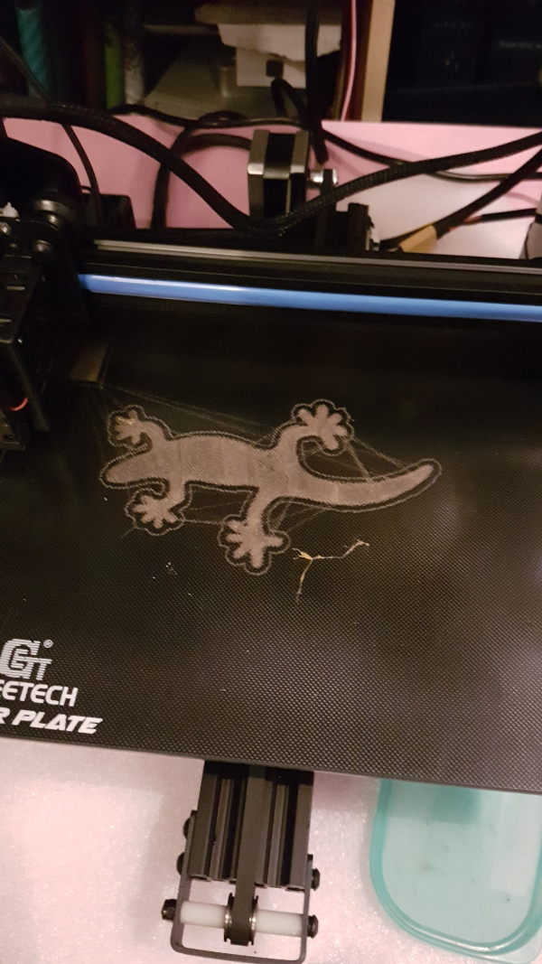 Even after levelling the bed (wrongly i think), my first print destroyed the nozzle and the Bed !! (i now have a splendid drawing of the lizard on my plate .. check pictures).