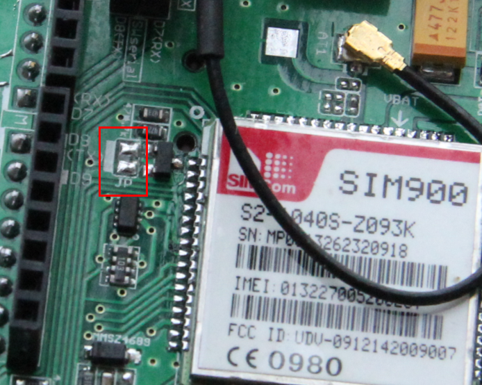 Software Triger; If use this way to power up the GPRS Shield, JP need to be soldered, then Digital Pin 9 of the Arduino will act as Software Triger port and Digital Pin 9 can not be use as other purpose.