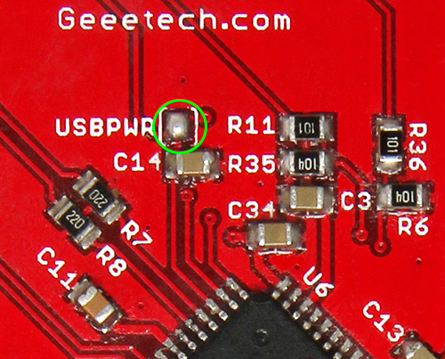 I de-soldered that connection and made sure it was no longer connected. Now when plugged into the usb and the power supply, the board is not recognized by the computer. I receive no error message and my mouse and keyboard become disabled until i disconnect the board from the computer. Because this was a defective board when I received it, I would like a new board or a refund.