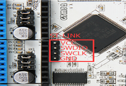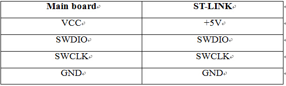 3)Use the ST-LINK to connect GTM32 to the PC. The wirings for the ST-LINK is as the picture shows: