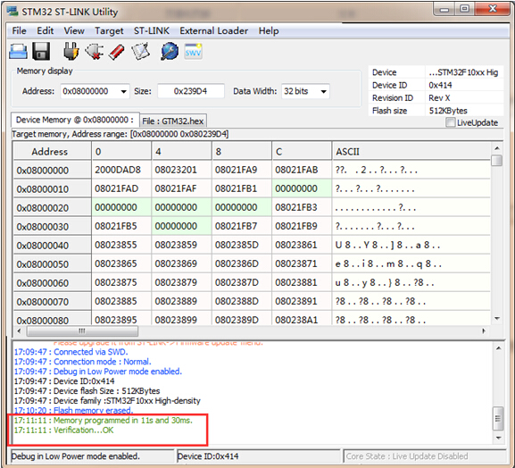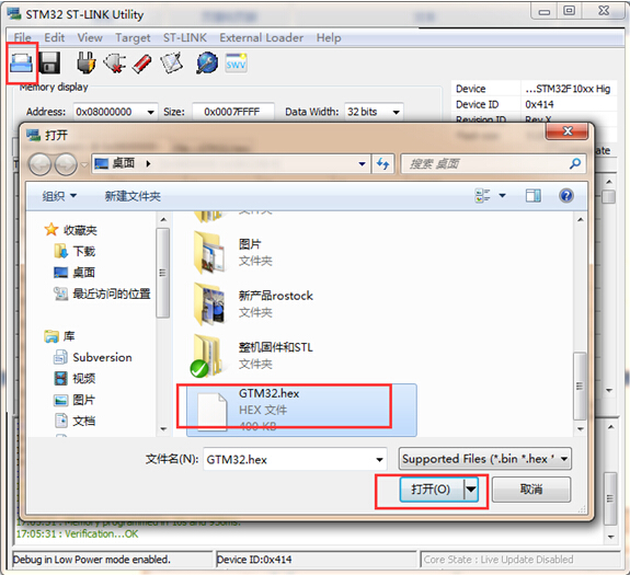 ②Click "Open file", and choose the GTM32.hex file.(the firmware)