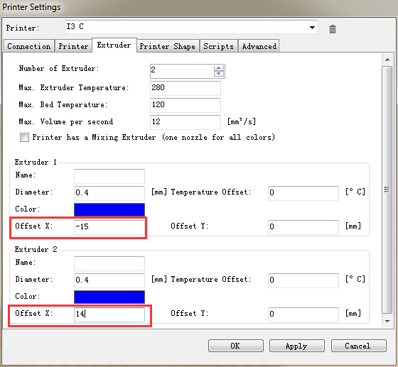 I'm having problems to setup the dual extruder printing. I followed the procedure as per Geeetech WIKI and doesn't work.