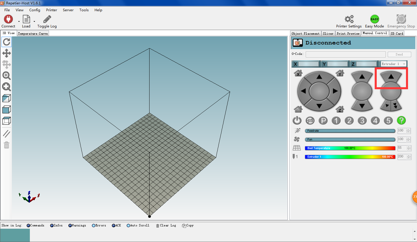 2、Filament Hard to remove > To remove the filament,you can reverse the motor of extruder by maunal control in the Repetier Host.Just like the attachment shows.