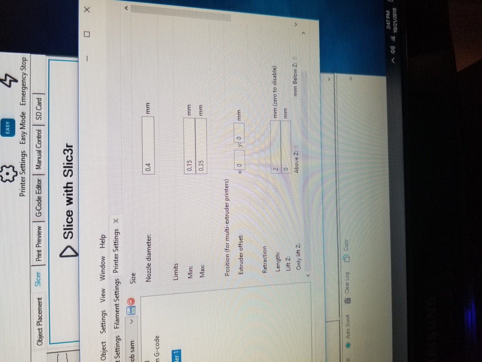 The pictures are the slicer settings and it's been showing 2h23min ete since this morning..