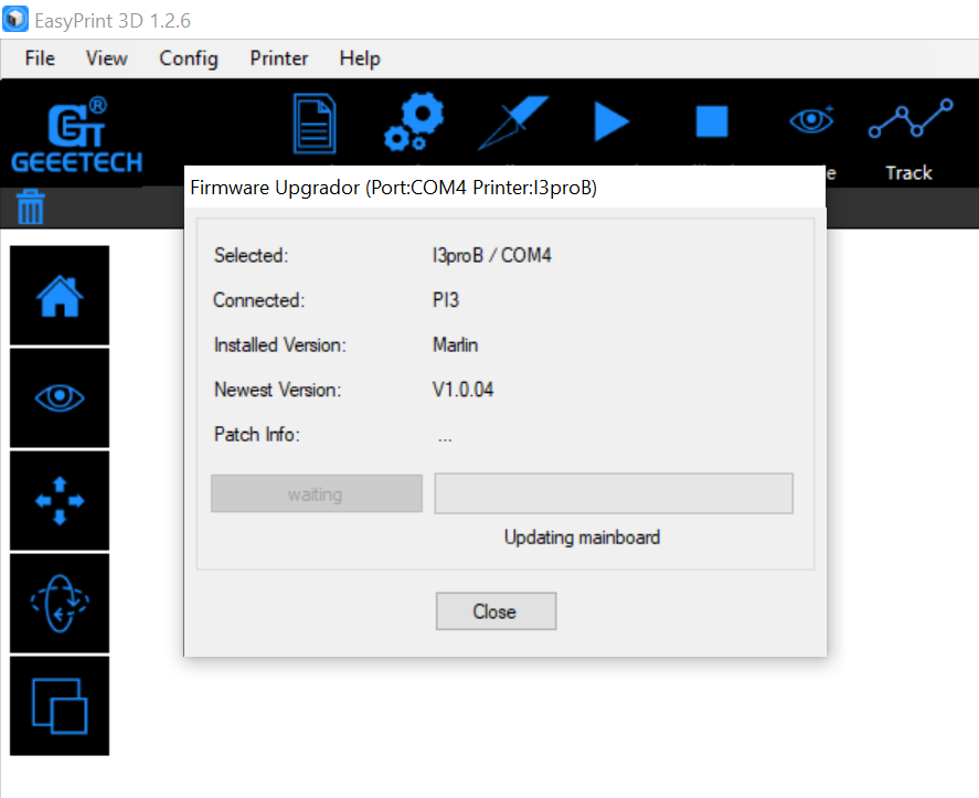 I've looked at the downloads section on the Geeetech website for the i3 pro B, and there's a hex file to download, but I'm not sure what to do with that? If that's any relevance.