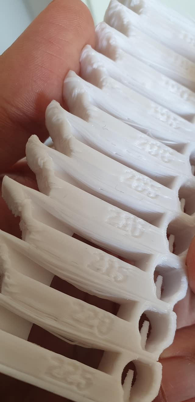 I have a Geeetech A20 and I struggle to get out clean overhangs, I tested to print a temperature tower, but I still have the same problem, the pla is curving upwards and it doesn't matter temperature.