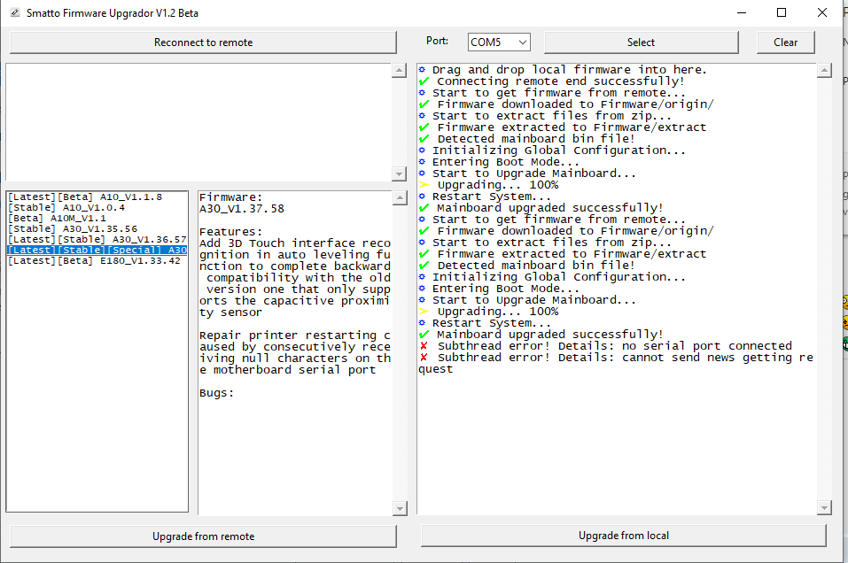 Fireware wurde mit Smartto installiert, habe alle 3 Firewares für A30 installiert, dann hat das Klopfen angefangen und hört nicht mehr auf.